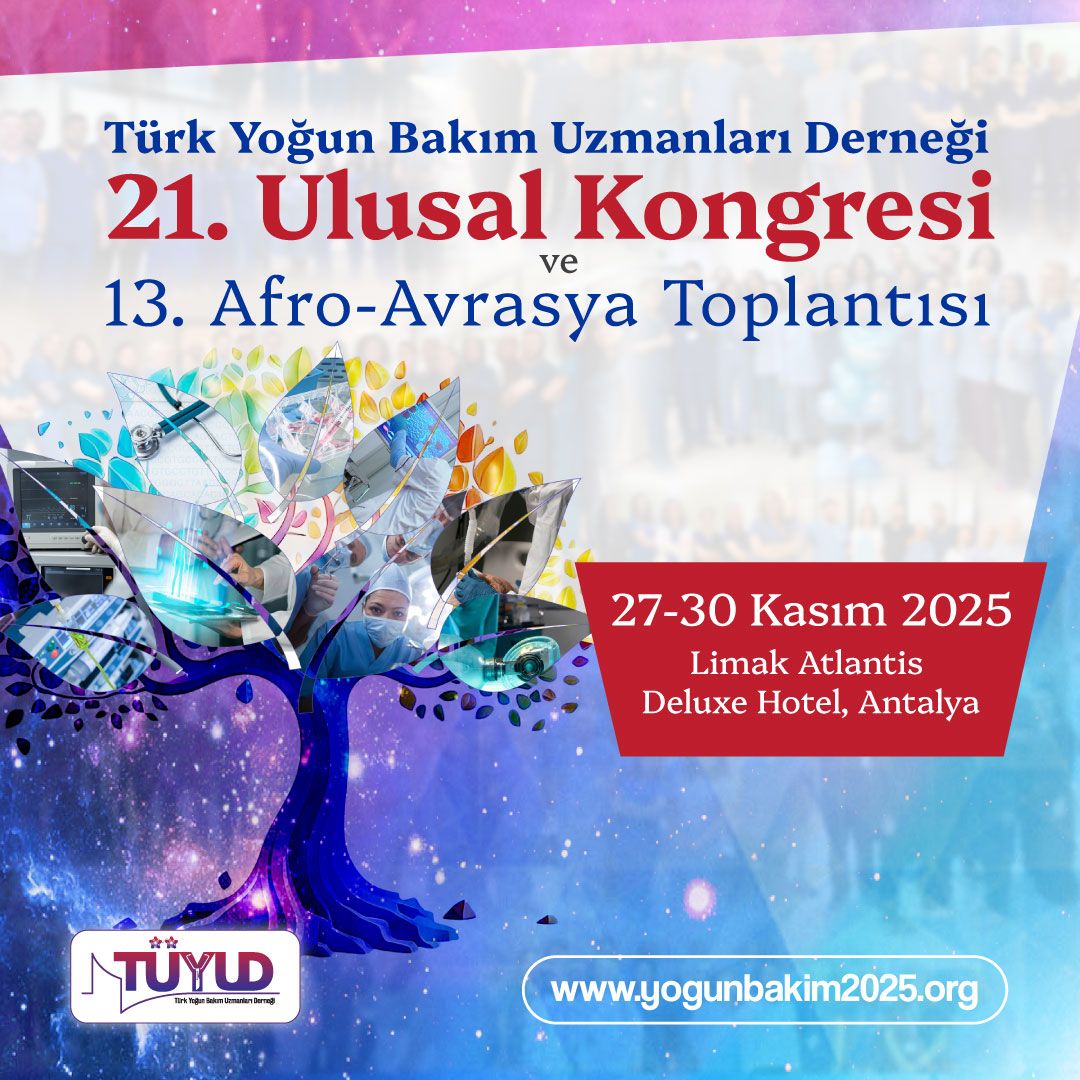 Türk Yoğun Bakım Uzmanları Derneği (TÜYUD) 21. Ulusal Kongresi 27 - 30 Kasım 2025 tarihleri arasında Antalya Limak Atlantis Deluxe Hotel’de düzenlenecektir.