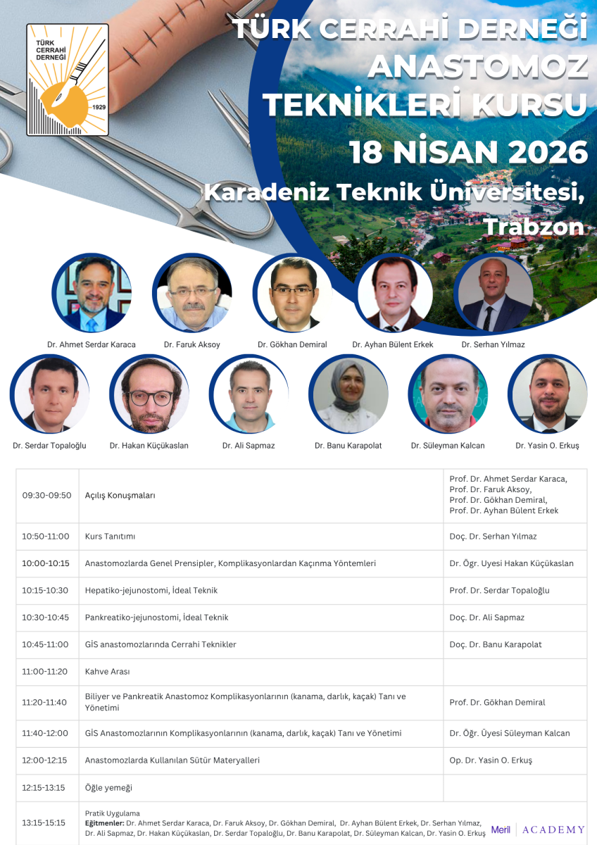 | Türk Cerrahi Derneği – Anastomoz Teknikleri Kursu 18 Nisan Cumartesi, Karadeniz Teknik Üniversitesi, Trabzon |
