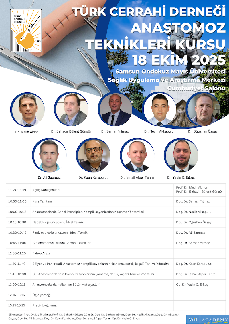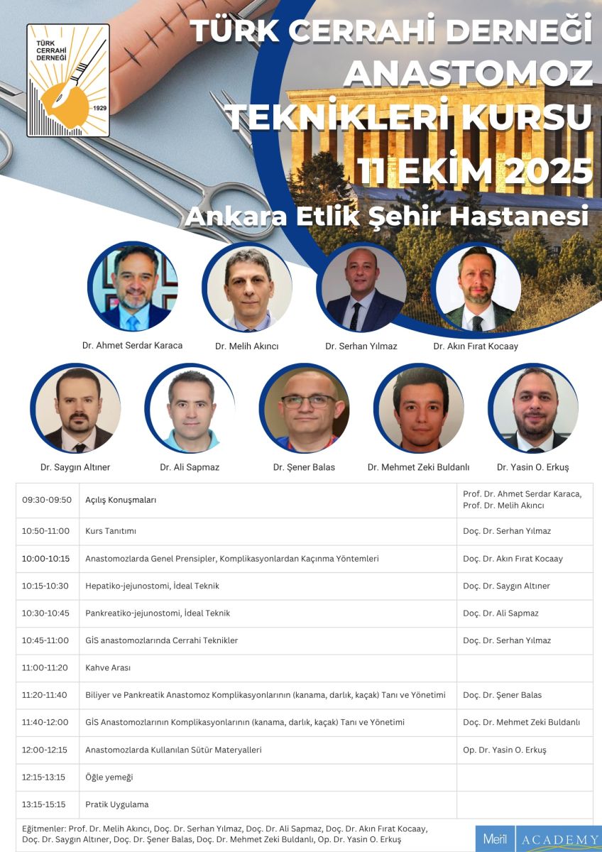 10:00-10:15 | Anastomozlarda Genel Prensipler, Komplikasyonlardan Kaçınma Yöntemleri | Doç. Dr. Akın Fırat Kocaay |